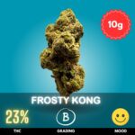 - 10g of Frosty Kong (23% THC, balanced hybrid) delivering happy, mellow vibes depending on your mood or needs.