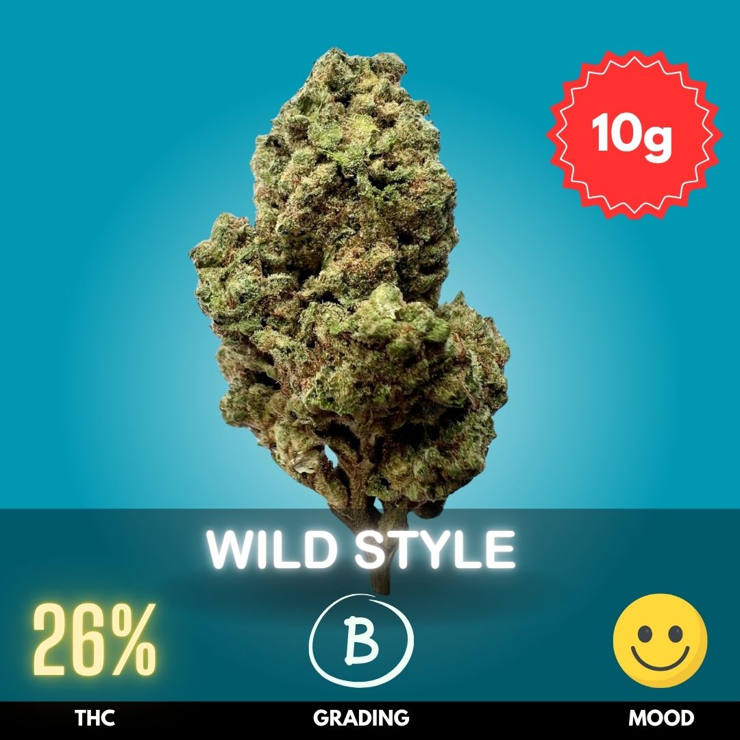 - 10g of Wild Style (26% THC, Sativa dominant) to boost creativity and joy