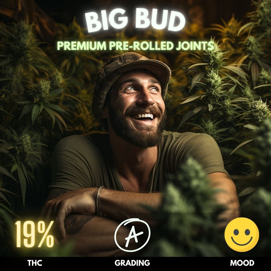 No grinding, no rolling, just pure ease. With our Big Bud pre-rolled joints, all you need to do is strike a match and immerse yourself in its rich aromas and benefits. Your ideal cannabis experience, now in a ready-to-enjoy form.