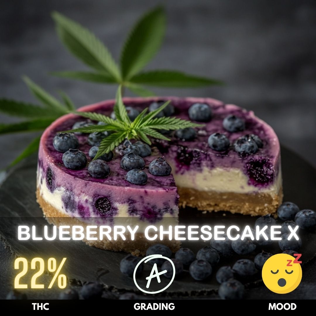 Blueberry Cheesecake X, crossed with Blueberry Cheesecake and Zensation, is a remarkable hybrid strain known for its intense flavor and powerful effects. This strain leans heavily toward Indica dominance, delivering deeply relaxing and calming effects. The average THC content of Blueberry Cheesecake X typically ranges between 22-25%, making it a potent option for both recreational and medicinal users.