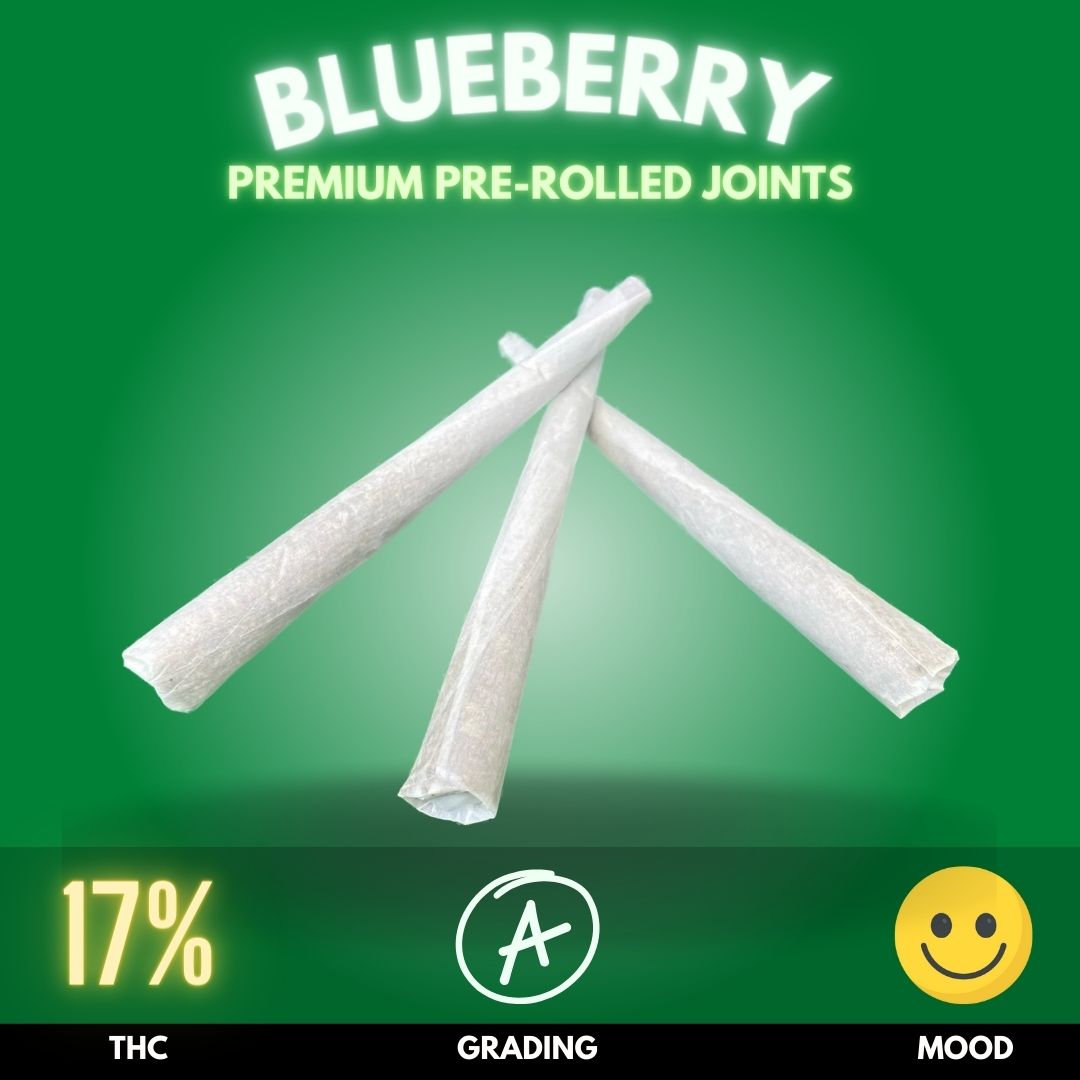 Our Blueberry pre-rolled joints are a toast to convenience and quality, embodying the freedom of ready-to-enjoy cannabis with a reliable, beneficial kick. Whether you’re seeking a creative muse, a veil of euphoria, or a medical companion, Blueberry sails above the ordinary, delivering an experience that is as enjoyable as it is beneficial. Each puff is a step towards a more enlightened and cheerful disposition, celebrating the simple yet profound joys of premium cannabis.