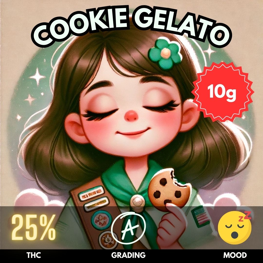 Cookie Gelato is an indulgent hybrid that marries the dessert-like richness of Girl Scout Cookies with the creamy potency of Gelato. The buds are dense, sparkling with trichomes, and colored in deep green tones with occasional purple swirls. Its aroma is a decadent blend of baked cookies, vanilla, and sweet citrus, delivering a smooth and flavorful smoke. With THC levels averaging 25–27%, Cookie Gelato is a powerhouse strain suited for those seeking a balanced yet robust experience.