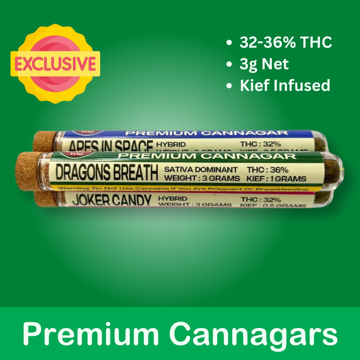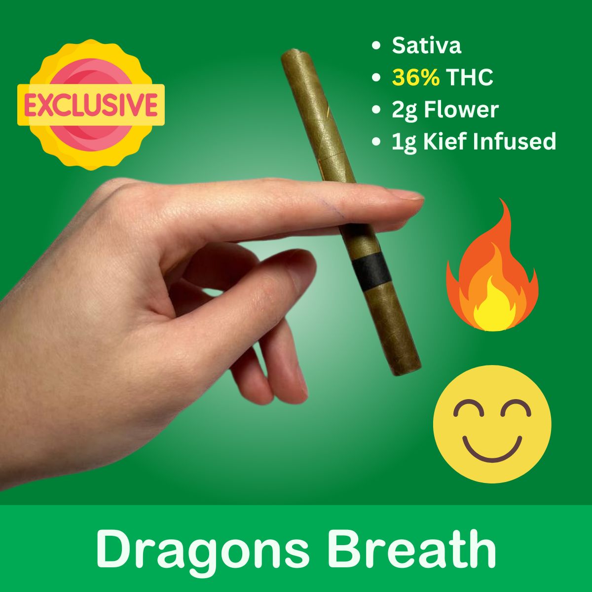 Unleash the power of our exclusive Dragon’s Breath Cannagar, a masterpiece for cannabis aficionados who demand the very best. Infused with 1 gram of potent Kief, this Cannagar achieves a staggering total THC content of 36%, promising an intense and exhilarating experience. The Dragon’s Breath strain, renowned for its balanced mix of uplifting and relaxing effects, is expertly showcased in this luxurious product.