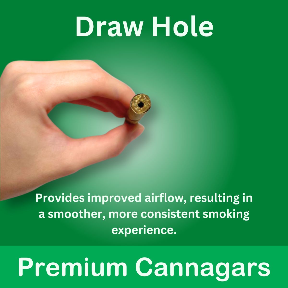 What sets our Dragon’s Breath Cannagar apart from others is its innovative Draw Hole. This distinctive feature ensures a smoother and more consistent smoking experience by allowing an even, controlled burn. The Draw Hole minimizes the effort needed to inhale, making each puff effortless and enjoyable. This results in a seamless smoke that fully enhances the rich, fiery flavors and complex aromas of the Dragon’s Breath strain.