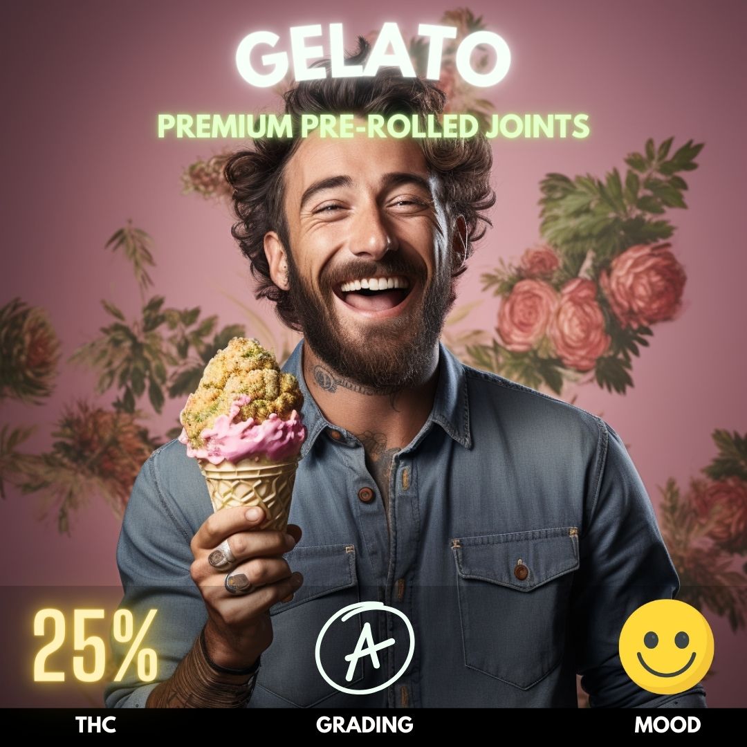 Step right up and dive into the delectable world of Gelato, now available in our hassle-free Pre-rolled Joints. This strain, flaunting its sativa dominance, is a genuine delight for those seeking a burst of euphoria, lifting spirits to new heights in just a few puffs.