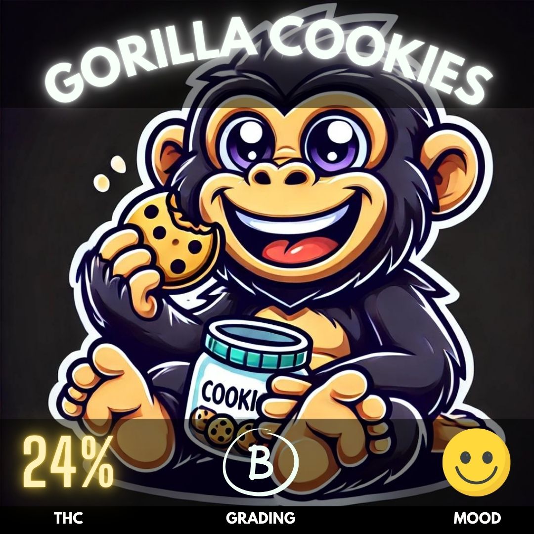 Gorilla Cookies is a well-known cannabis strain that is a balanced hybrid with a slight Indica dominance. This strain is a cross between Gorilla Glue #4 and Thin Mint Girl Scout Cookies, resulting in a potent combination with an average THC content ranging between 23% and 28%. The high THC levels make it a favorite among experienced users seeking a strong and lasting effect.