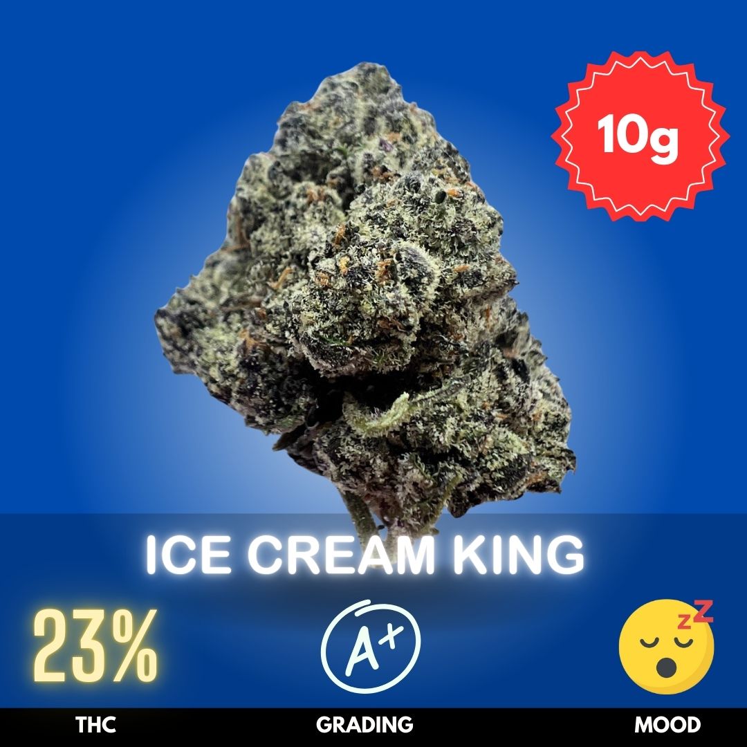 The aroma and flavor are where Ice Cream King truly rules: a rich blend of vanilla cream, sweet berries, and light gas, with a buttery smooth finish on the exhale. The effects set in with a wave of euphoria and mental ease, then gradually melt into a heavy, full-body calm perfect for unwinding in the evening.