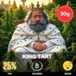 King Tart is a soothing Indica-dominant strain renowned for its serene effects and powerful 25% THC concentration. Born from the lineage of King Louis XIII and Cherry Tart, this cultivar combines classic sedation with a fruity tart twist. Its aroma is rich with notes of dark cherry, pine, and sweet earth, while the flavor features a layered profile of sour berries, herbal musk, and a lingering woodiness. The buds are dense, deep green, and generously coated with glistening trichomes and violet accents.