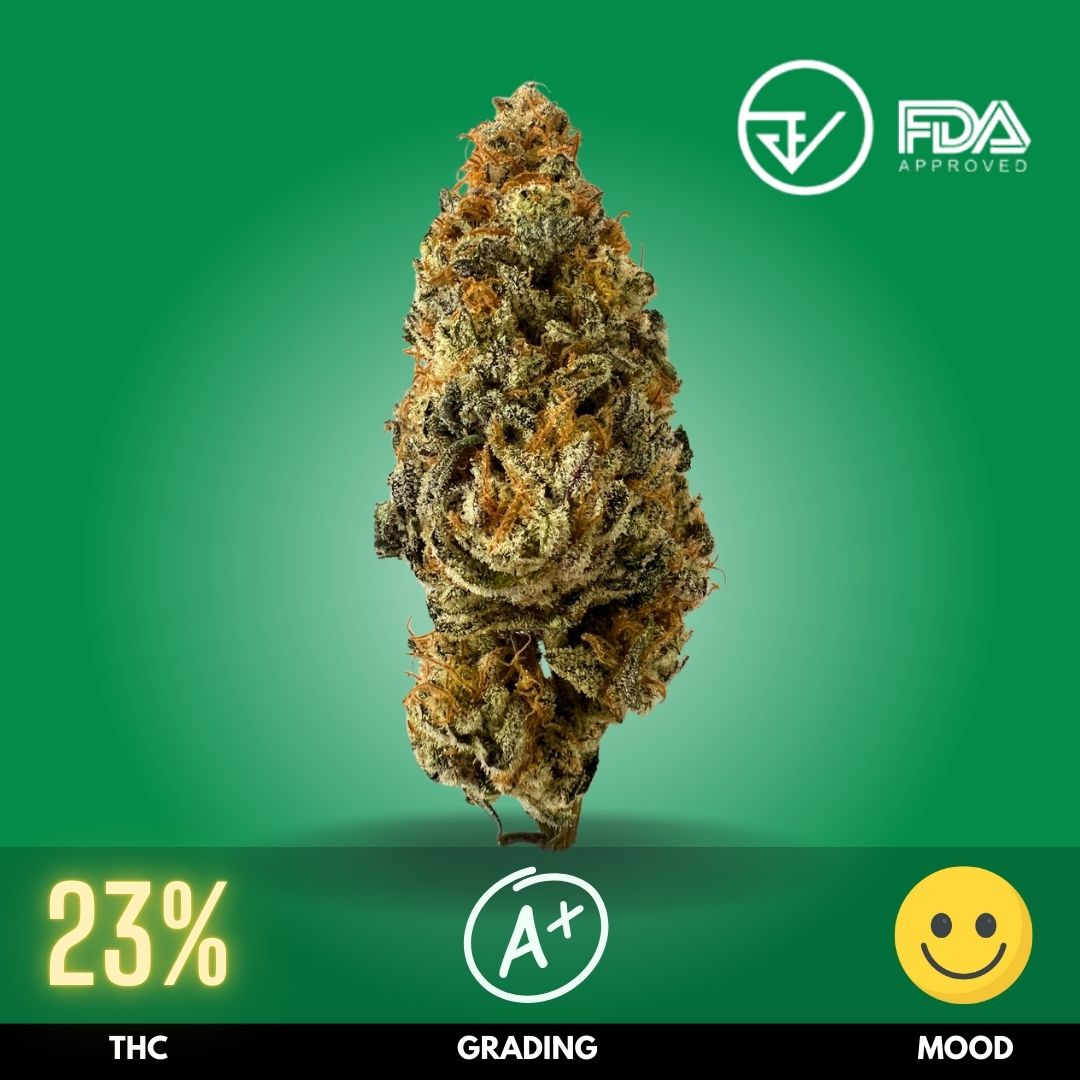 - 10g of Monster Zkittles (23% THC) – A Sativa-dominant powerhouse, this legendary strain delivers deep euphoric effects, making it perfect for a pick-me-up after a long day. Let the uplifting mental high melt away stress and elevate you into a blissful cerebral experience.
