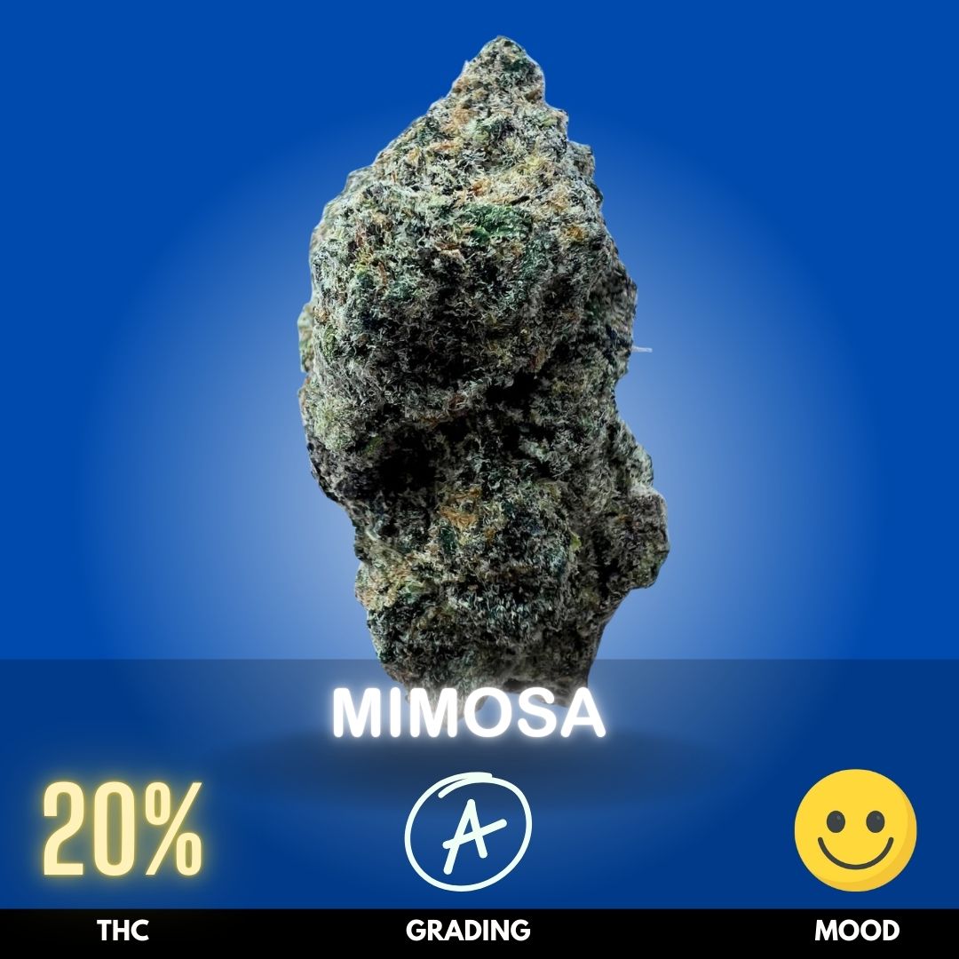 Mimosa is a vibrant, uplifting cannabis strain known for its bright citrus aroma and energizing effects. With THC levels typically around 19–22%, Mimosa leans strongly Sativa dominant, making it ideal for daytime use when creativity and focus matter. Users often describe its scent as a blend of fresh orange and sweet tropical notes that instantly invigorate the senses. The high begins with a gentle cerebral rush that enhances mood and clarity, setting a positive tone for the day ahead.