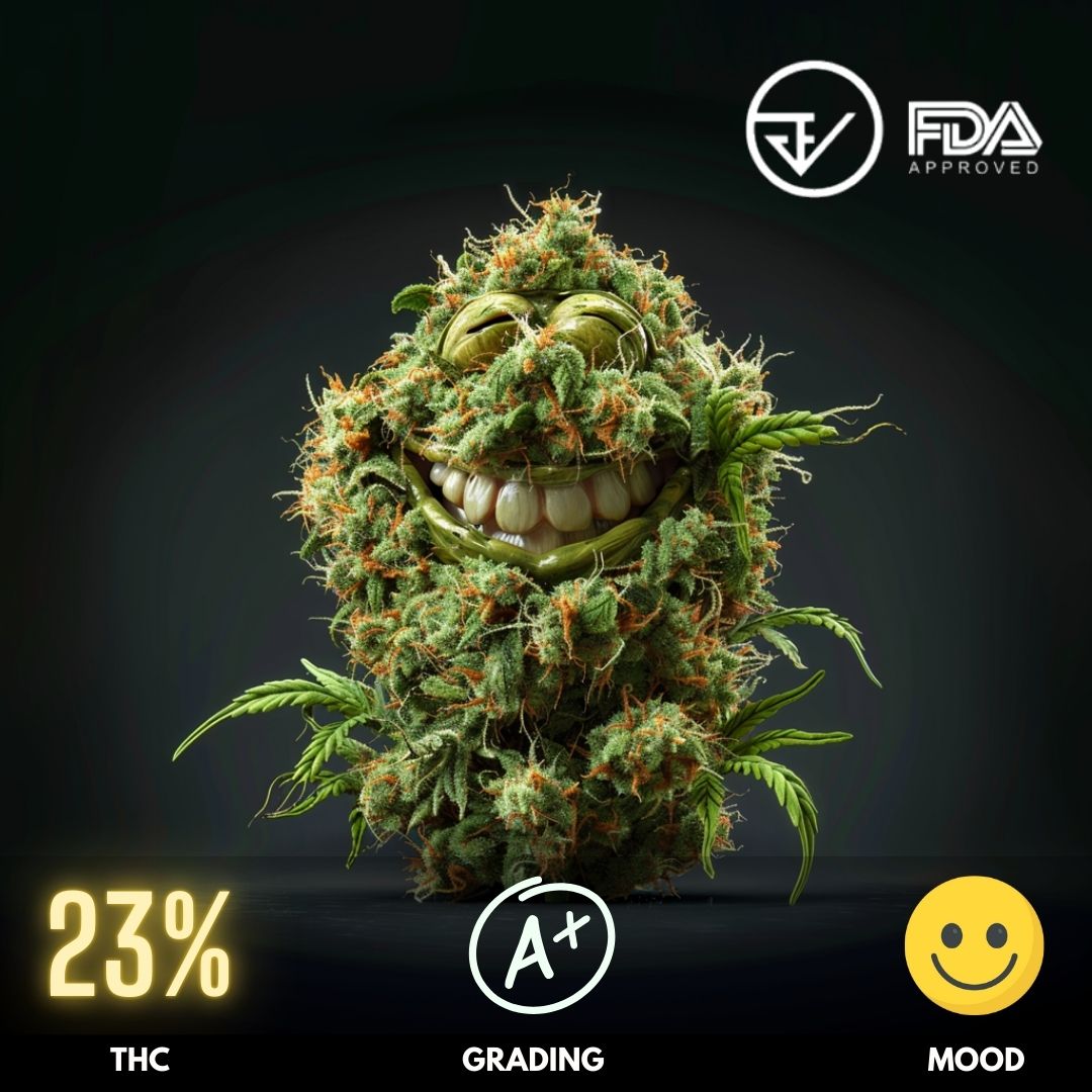 Monster Zkittlez is a premium cannabis strain renowned for its vibrant flavors and potent effects. Cultivated using advanced aeroponic techniques by a grower certified with GACP 2.0 (WHO GACP) and FDA Thailand for medical-grade cannabis, this strain stands out in the market for its quality and safety standards. Monster Zkittlez is a hybrid strain with a slightly Indica-dominant profile, offering a balanced experience that combines the best of both Indica and Sativa characteristics.