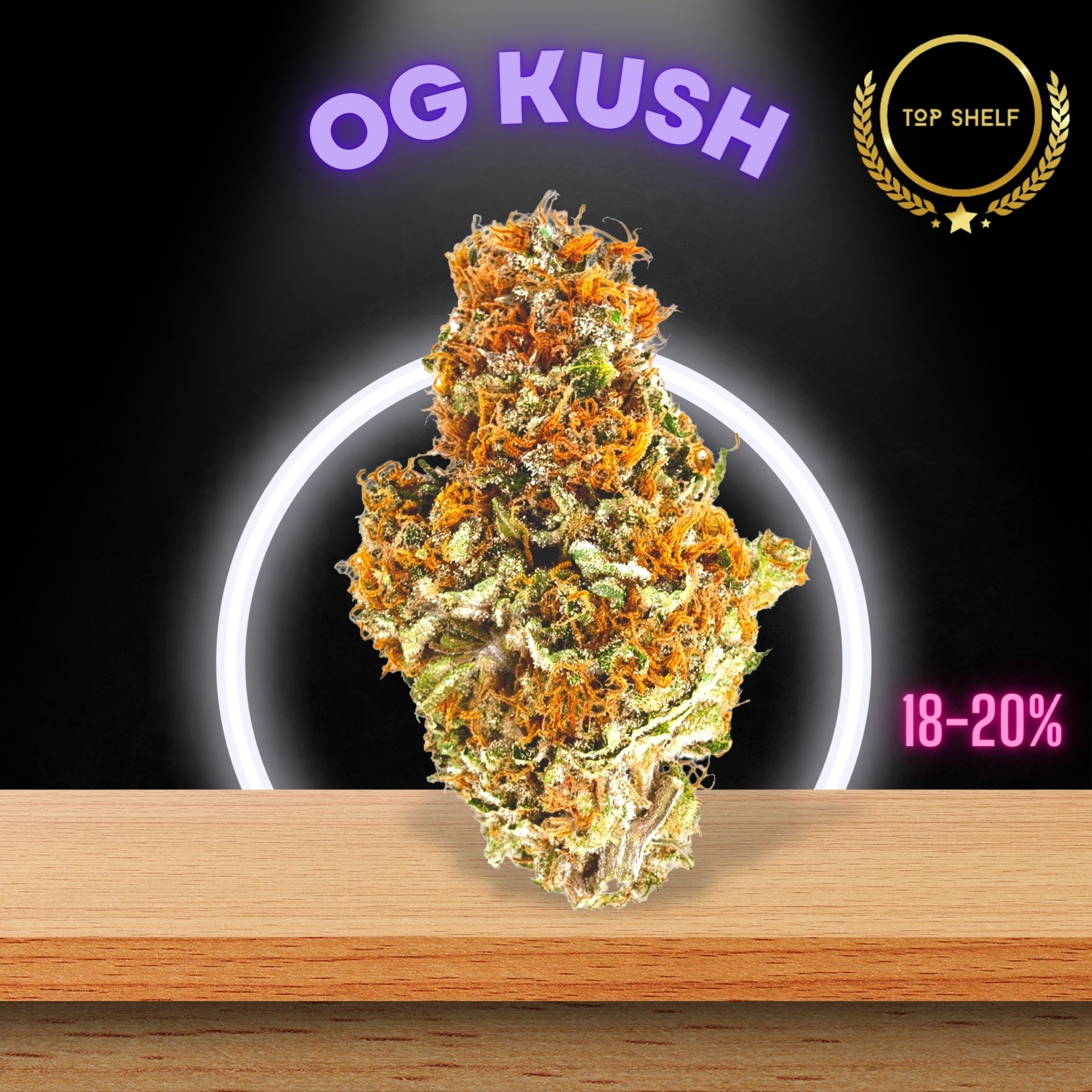 OG Kush, also known as “Premium OG Kush,” was first cultivated in Florida in the early ‘90s when a marijuana strain from Northern California was supposedly crossed with Chemdawg, Lemon Thai and a Hindu Kush plant from Amsterdam. The result was a hybrid with a unique terpene profile that boasts a complex aroma with notes of fuel, skunk, and spice. OG often refers to “Original Gangster,” indicating either the strain’s authenticity or intensity. OG Kush should smell like lemon-pine-fuel with a high-THC, mixed head and body effect. It’s often enjoyed in the back half of the day to ease stress.