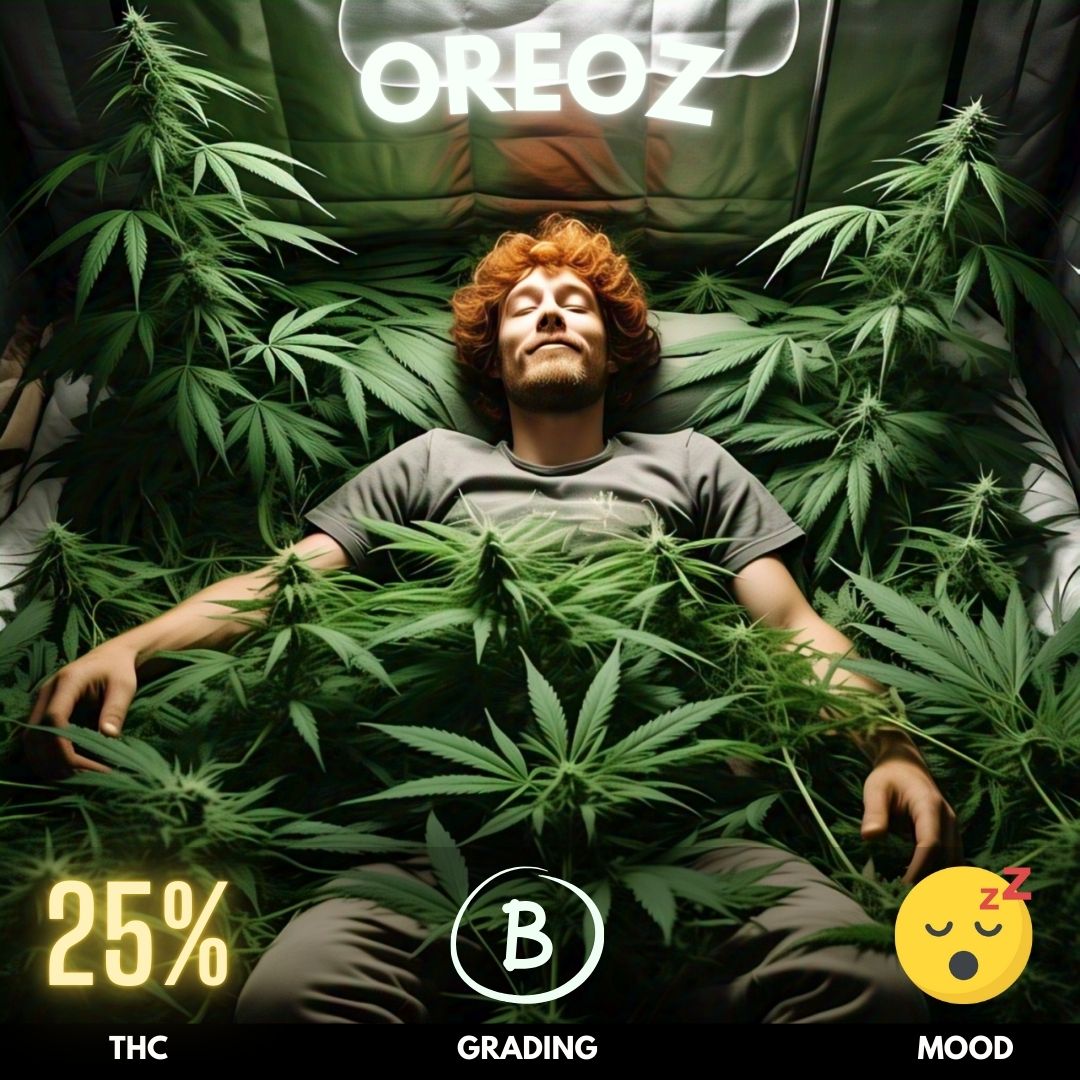 The effects of Oreoz are deeply relaxing and sedating, making it ideal for evening use. Users report an intense euphoric onset, followed by a body-heavy relaxation that can lead to “couch-lock.” While it provides a mental uplift, its Indica dominance ensures a strong physical sedation, making it unsuitable for tasks requiring focus or high energy.