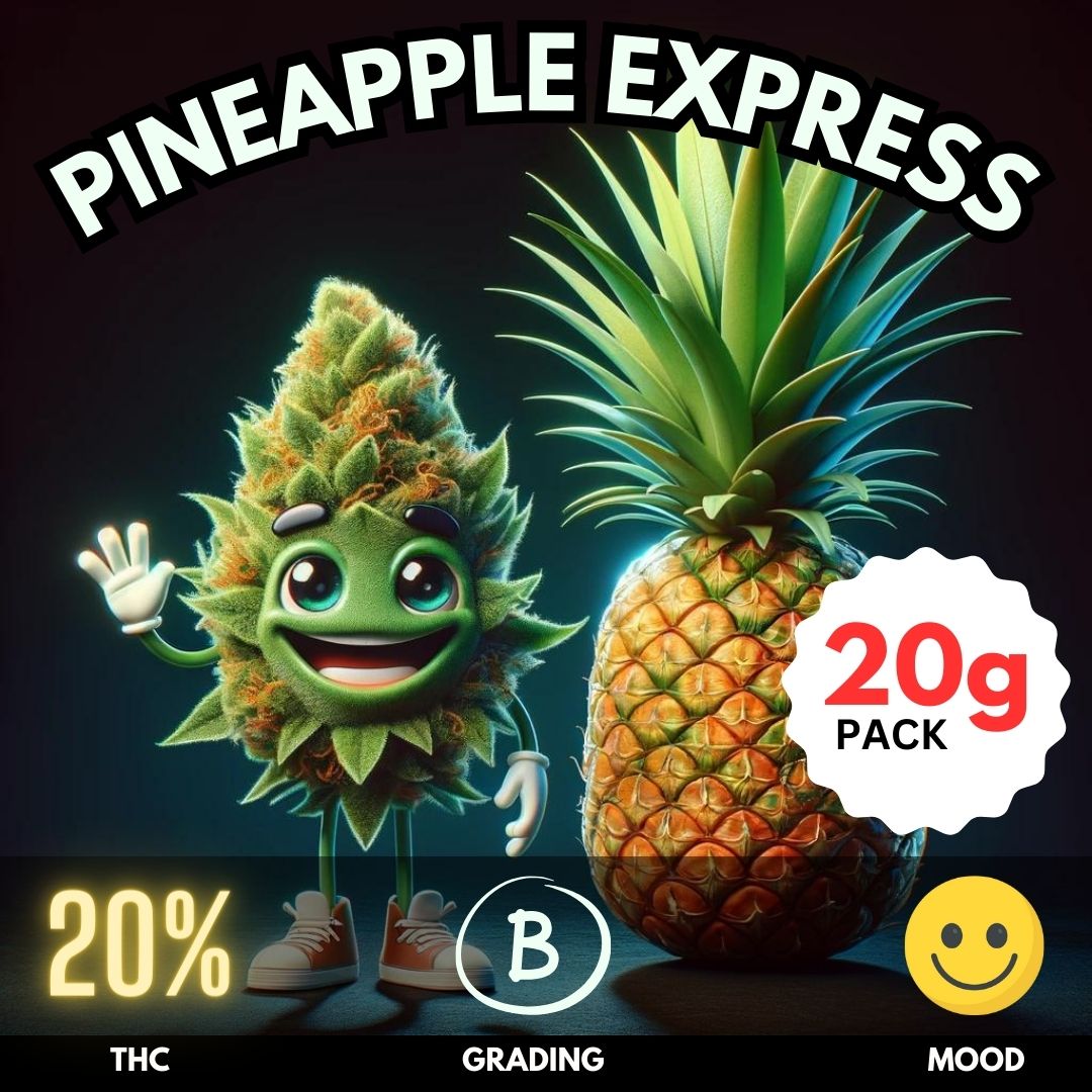 Pineapple Express is a beloved hybrid strain with a reputation that precedes itself, thanks in part to the blockbuster film it shares its name with. This sativa-dominant hybrid boasts a moderately high THC content, typically ranging around 20%. The strain is celebrated for its deliciously sweet, tropical aroma that hints at its name, with notes of pineapple, mango, and pine, offering a sensory experience that’s as delightful as its cinematic counterpart.