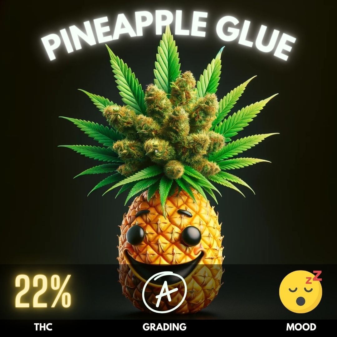 Pineapple Glue is an exceptional cannabis strain that represents a perfect synergy of flavor and potency. This strain is an indica-dominant hybrid, resulting from the cross between the flavorful Pineapple and the potent Gorilla Glue. With a THC level that typically falls between 18-24%, Pineapple Glue is renowned for delivering a powerful and long-lasting high that satisfies both recreational and medical users.
