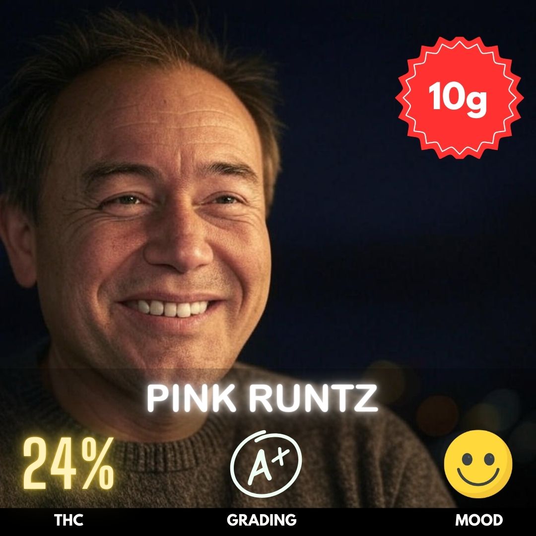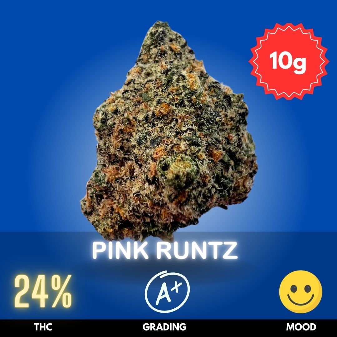 Boasting a THC of 24%, Pink Runtz is a balanced hybrid (50% indica, 50% sativa), born from the legendary Runtz lineage. Its effects offer a delightful duality: