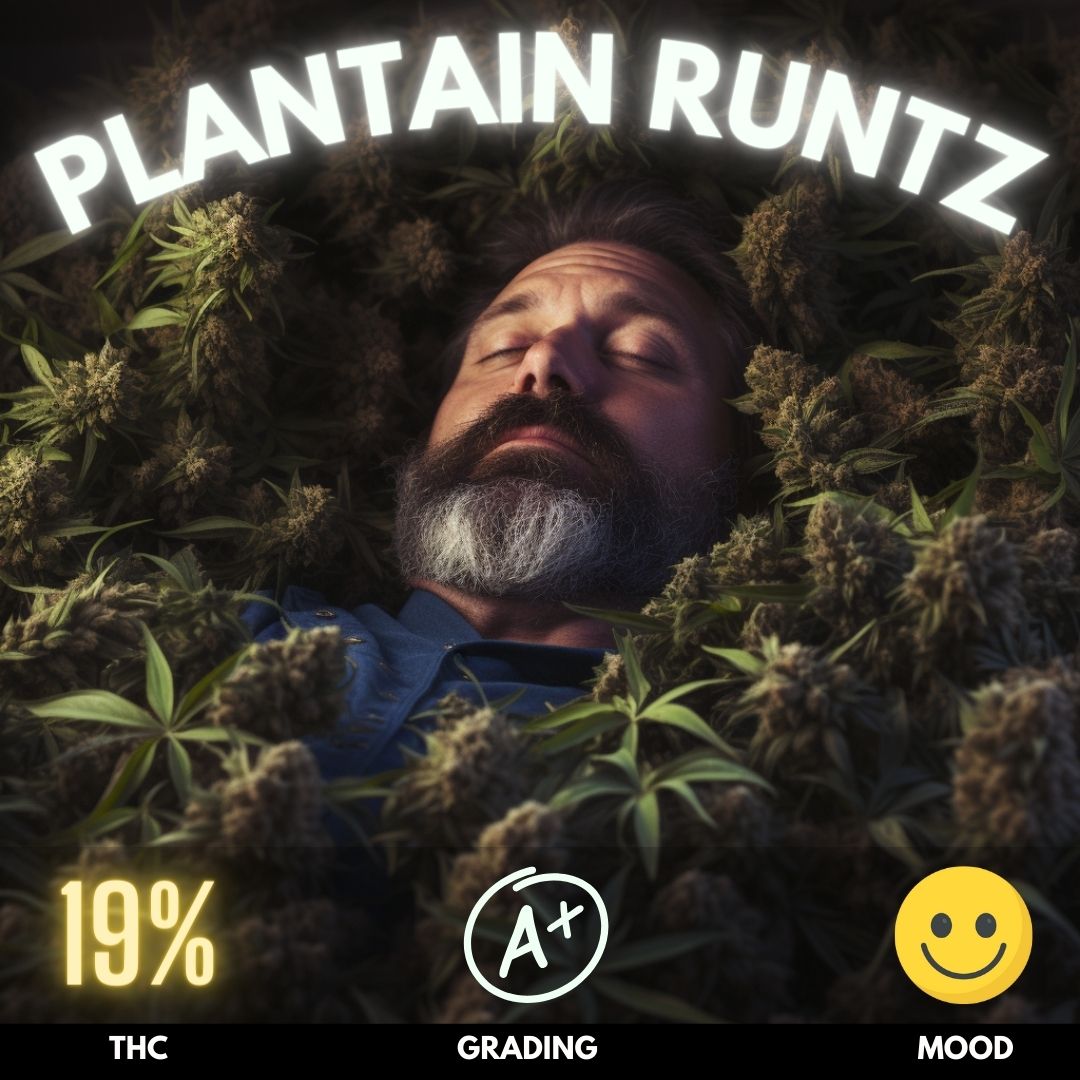 Boasting a THC level that hovers around 19%, Plantain Runtz offers an experience that bridges the gap between Sativa and Indica. With a gentle Indica-dominant influence, it delivers a calming relaxation that’s perfect for winding down without feeling overwhelmed. This strain’s medical potential shines through as it aids in reducing stress, anxiety, and muscle tension, making it a peaceful escape from the demands of everyday life.
