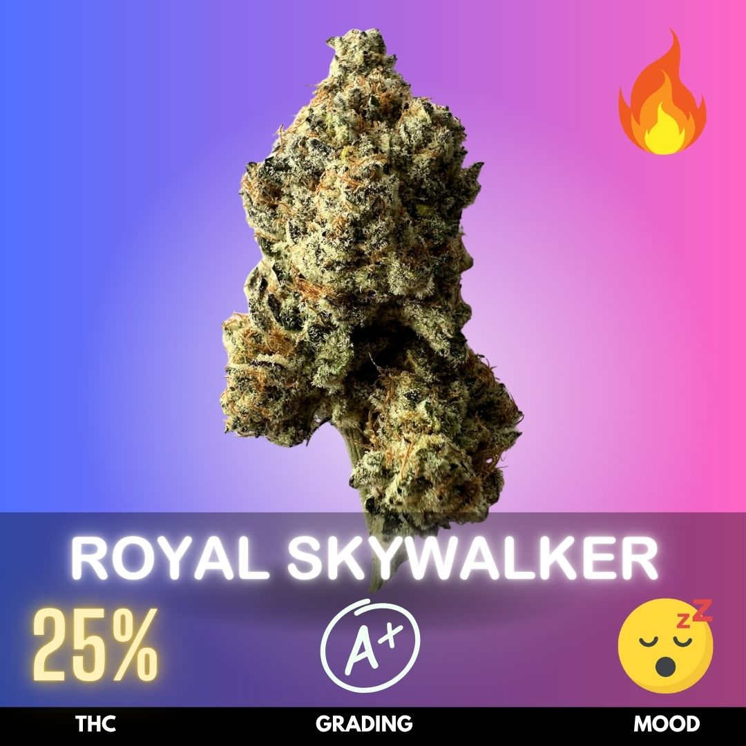Medicinally, Royal Skywalker is prized for relieving insomnia, chronic pain, stress, and muscle tension, while promoting restful sleep and inner calm.
