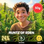 This hybrid achieves a near-equal balance between Sativa and Indica effects, making it suitable for use any time of day. Users report a wave of mental clarity and creative stimulation accompanied by a gentle body relaxation that doesn’t overwhelm. This makes Runtz of Eden perfect for social activities, creative tasks, or unwinding without the risk of sedation or couch-lock.