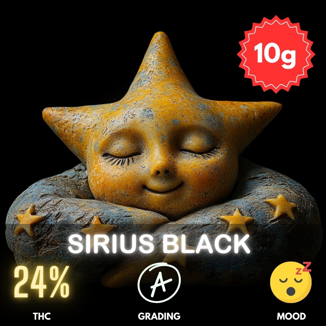The aroma of Sirius Black is rich and complex, featuring a blend of sweet berries and earthy undertones with a hint of spiciness. When smoked or vaporized, the flavor mirrors its scent, delivering a smooth and fruity taste with subtle herbal notes on the exhale. The effects of Sirius Black are deeply soothing, making it an ideal choice for evening use or for those looking to unwind after a long day.