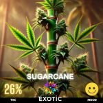 Sugar Cane is a slightly sativa-dominant hybrid (60% sativa / 40% indica), bred by In House Genetics. Its dense, frosty buds are coated in a thick layer of crystalline trichomes, giving them a sugar-dusted appearance. Vibrant green and deep purple hues, accented by fiery orange pistils, make this strain a visual standout. With a potent THC content of 26%, Sugar Cane delivers a well-balanced high that is both mentally uplifting and physically soothing. Its terpene profile features a sweet, candy-like aroma with notes of grape, tropical fruit, and a hint of earthy spice, offering a smooth and flavorful smoking experience.