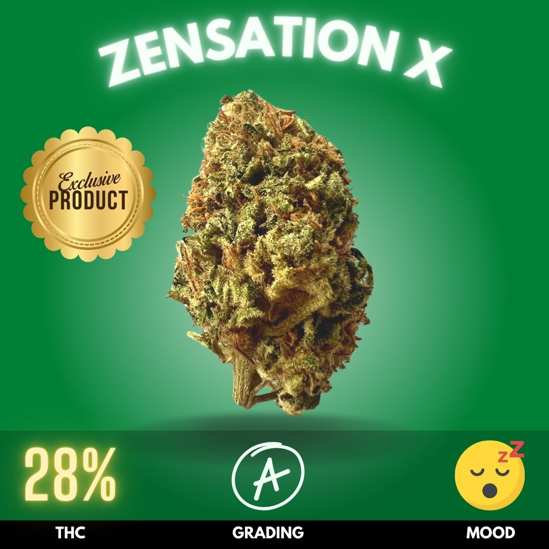 At the heart of this pack is Zensation X, a premium Indica-dominant cannabis flower, renowned for its potent 28% THC content. This remarkable strain is expertly cultivated to deliver a soothing, sleep-inducing effect, gently cradling you into a peaceful slumber. Its robust potency makes it a standout choice for combating sleep disturbances, ensuring a tranquil night’s rest.