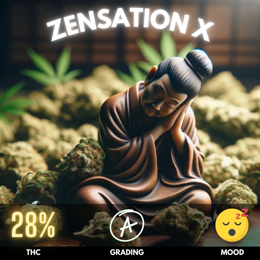 Zensation X is particularly renowned for its potent, sedative effects. It’s highly effective in alleviating symptoms associated with sleeping disorders and insomnia, promoting deep and restful sleep. The high THC content ensures a powerful, relaxing experience, starting with a cerebral euphoria that gradually eases into a profound body relaxation. This strain is also beneficial for managing stress, anxiety, and chronic pain, making it a versatile choice for therapeutic cannabis users seeking potent relief.